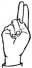 На ћирилици написано КОСТАДИН КНЕЖЕВИЋ састоји се из 16 слова [?]. Исписано ћириличном једноручном азбуком за глувонеме: